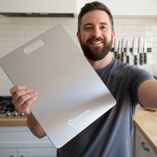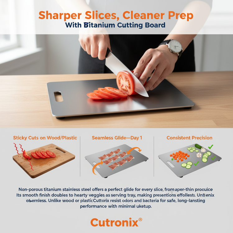 Meet your new kitchen sidekick: double-sided titanium cutting board that stays sharp, clean, and ready for action. Perfect for slicing meat, fruits, veggies, and more.